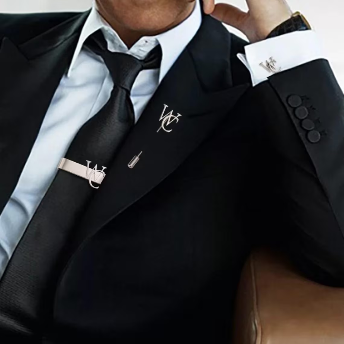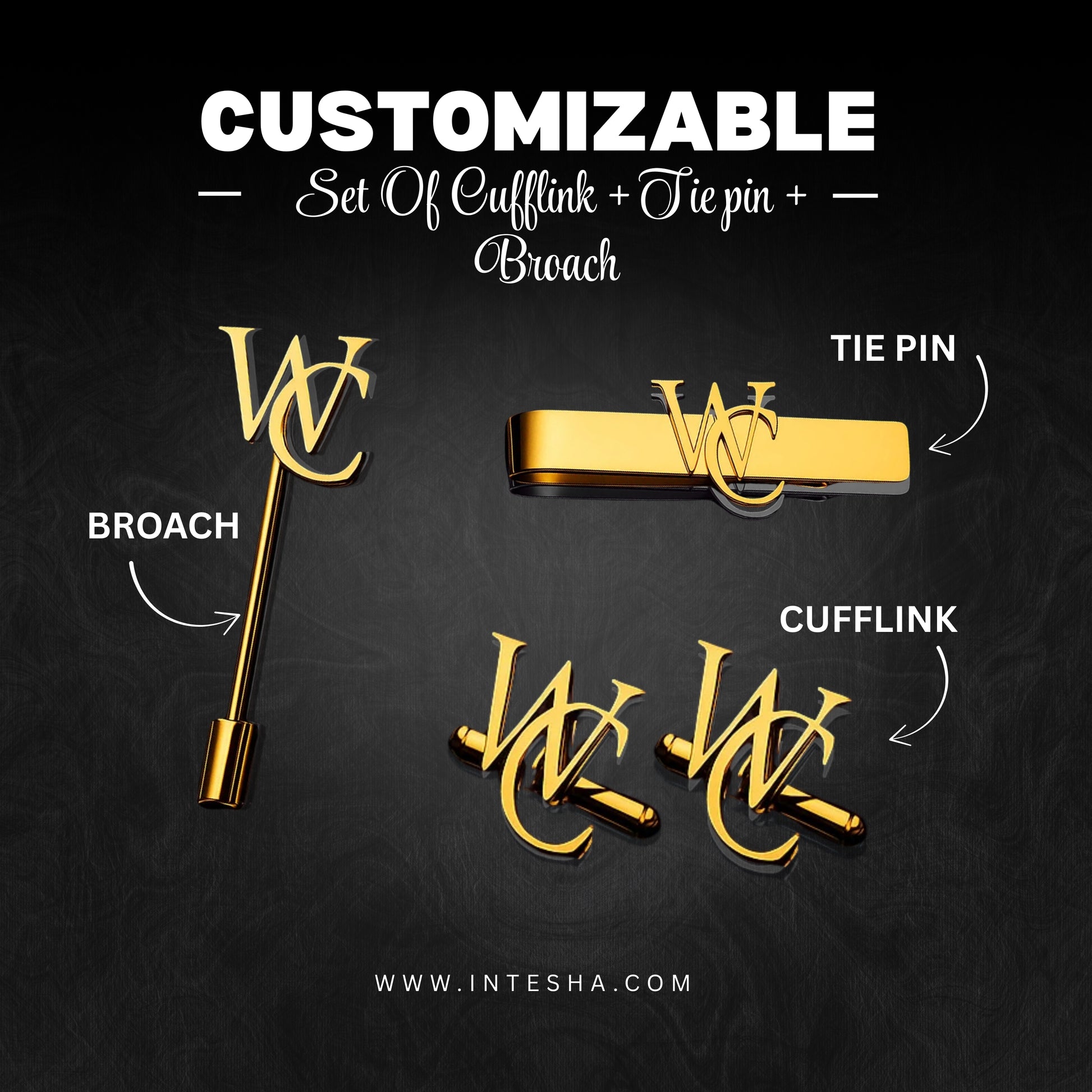 Personalised Men's Combo Accessory Set, Monogram Cufflinks, Lapel Pin, Tie Bar