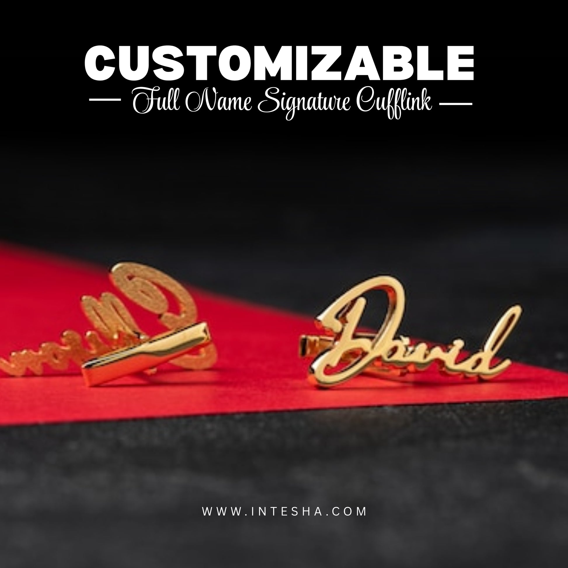 Personalized Full Name Signature Cufflinks for Men, Set of 1 Pair (2 Pcs)