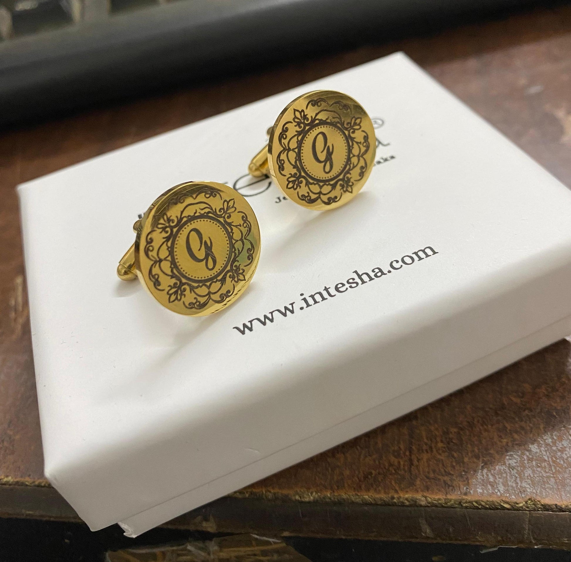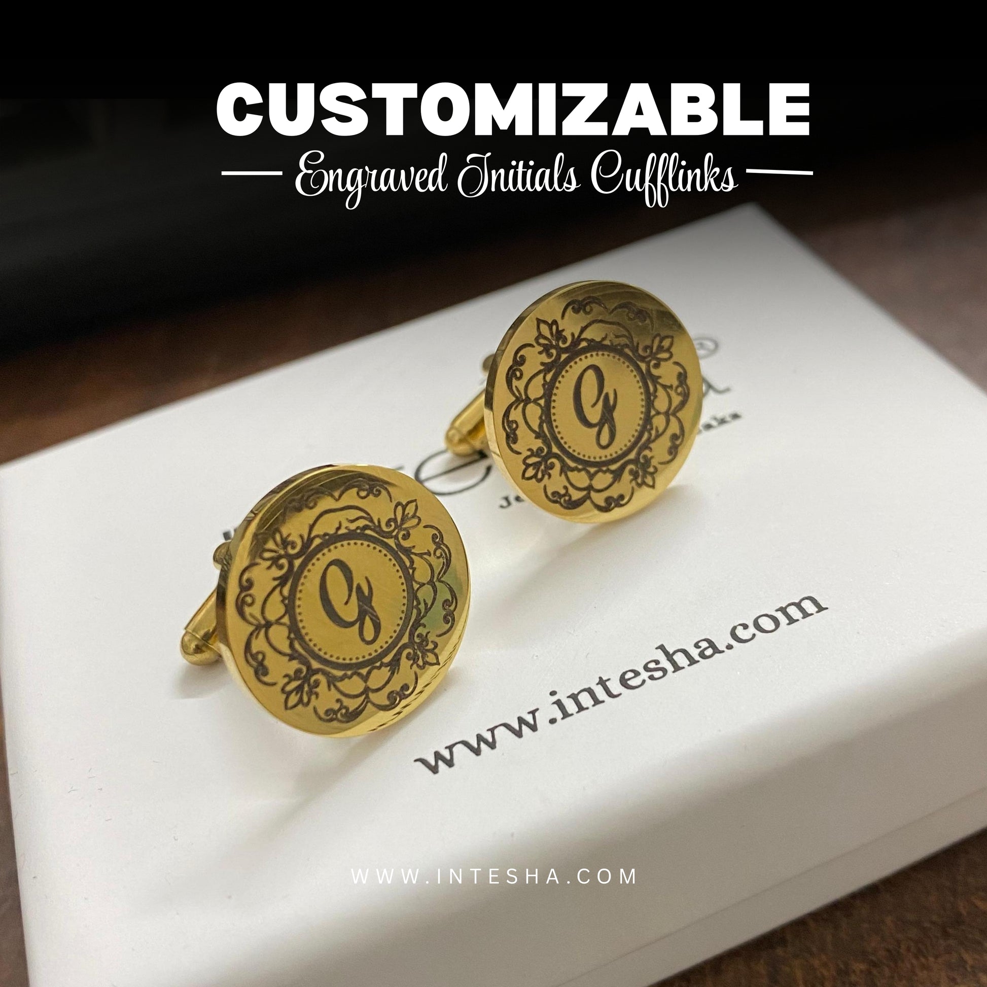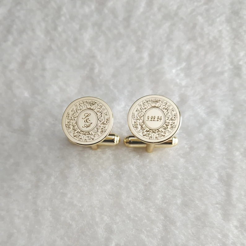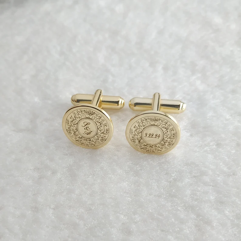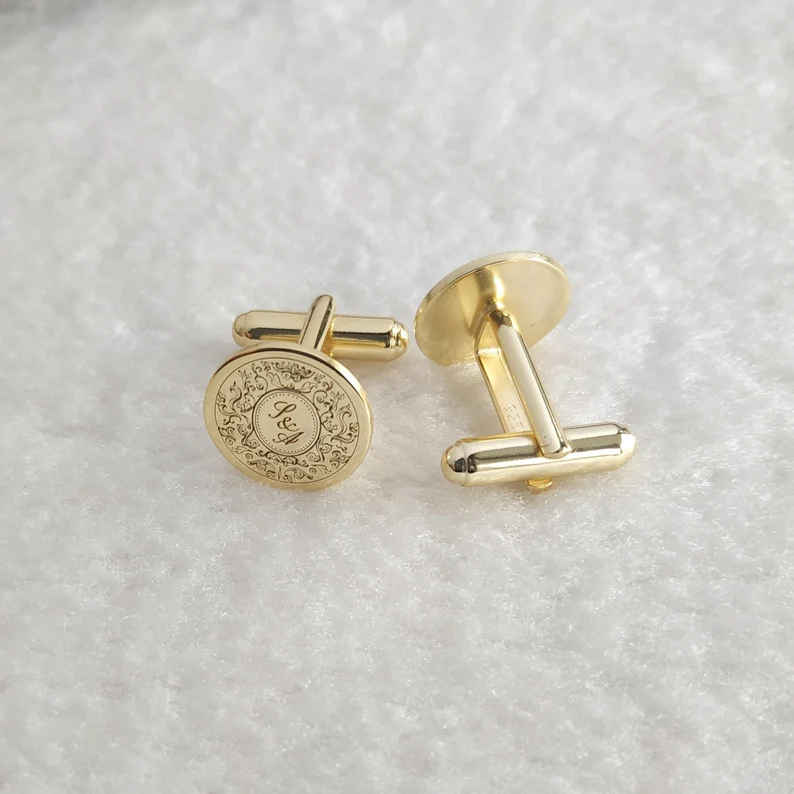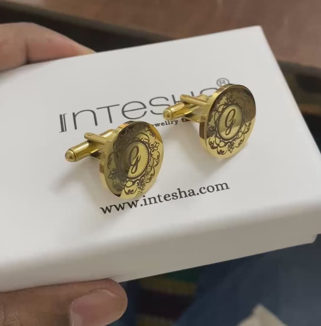 Premium Engraving Initial Name Cufflinks for Men, Set of 1 Pair (2 Pcs)
