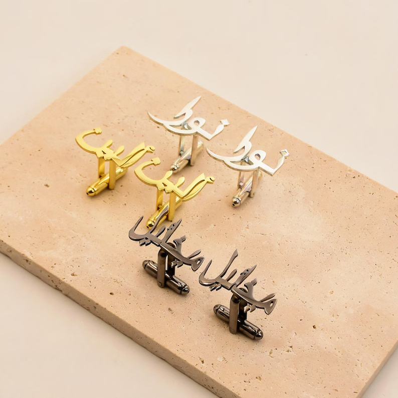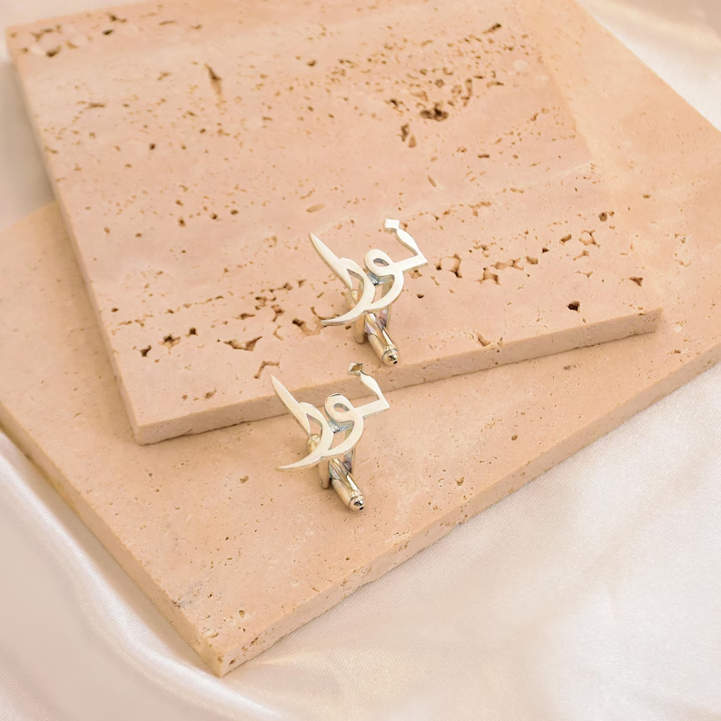 Arabic Handmade Initial Name Cufflinks for Men, Set of 1 Pair (2 Pcs)
