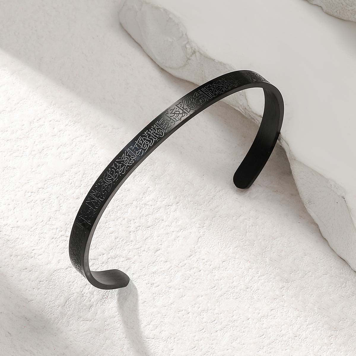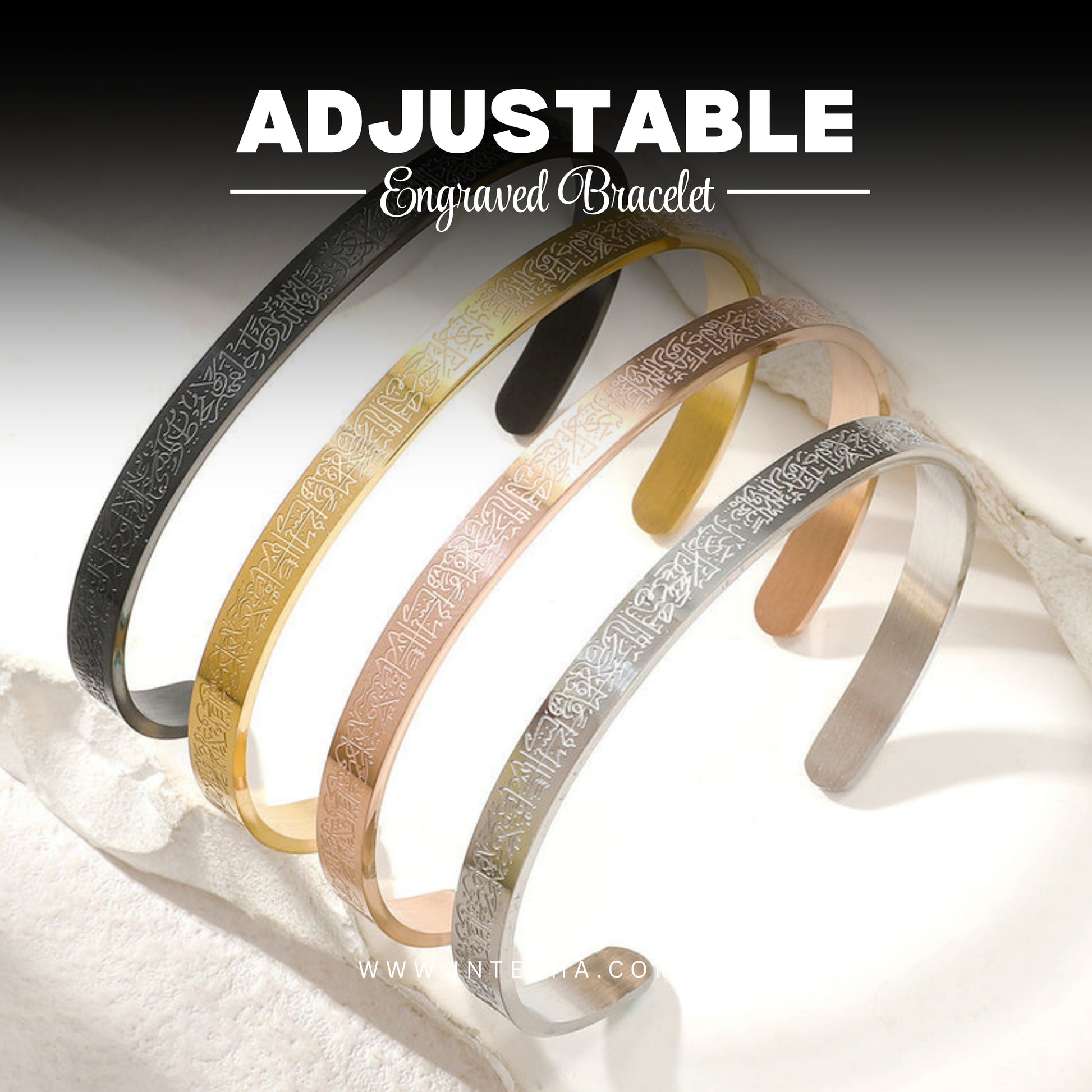 Stainless Steel Adjustable Engrave Ayatal Kursi Cuff Bracelet Kada for Women and Men | Kada Stainless Steel Bangle Inspirational Bracelets Openable Bangle for Men