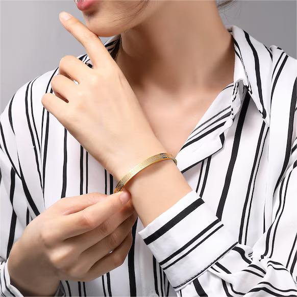 - Elegant Engraving: The intricate engravings add a touch of personal flair and elegance. Whether you’re looking for a minimalist design or something more detailed, this bracelet’s versatile style complements any outfit.